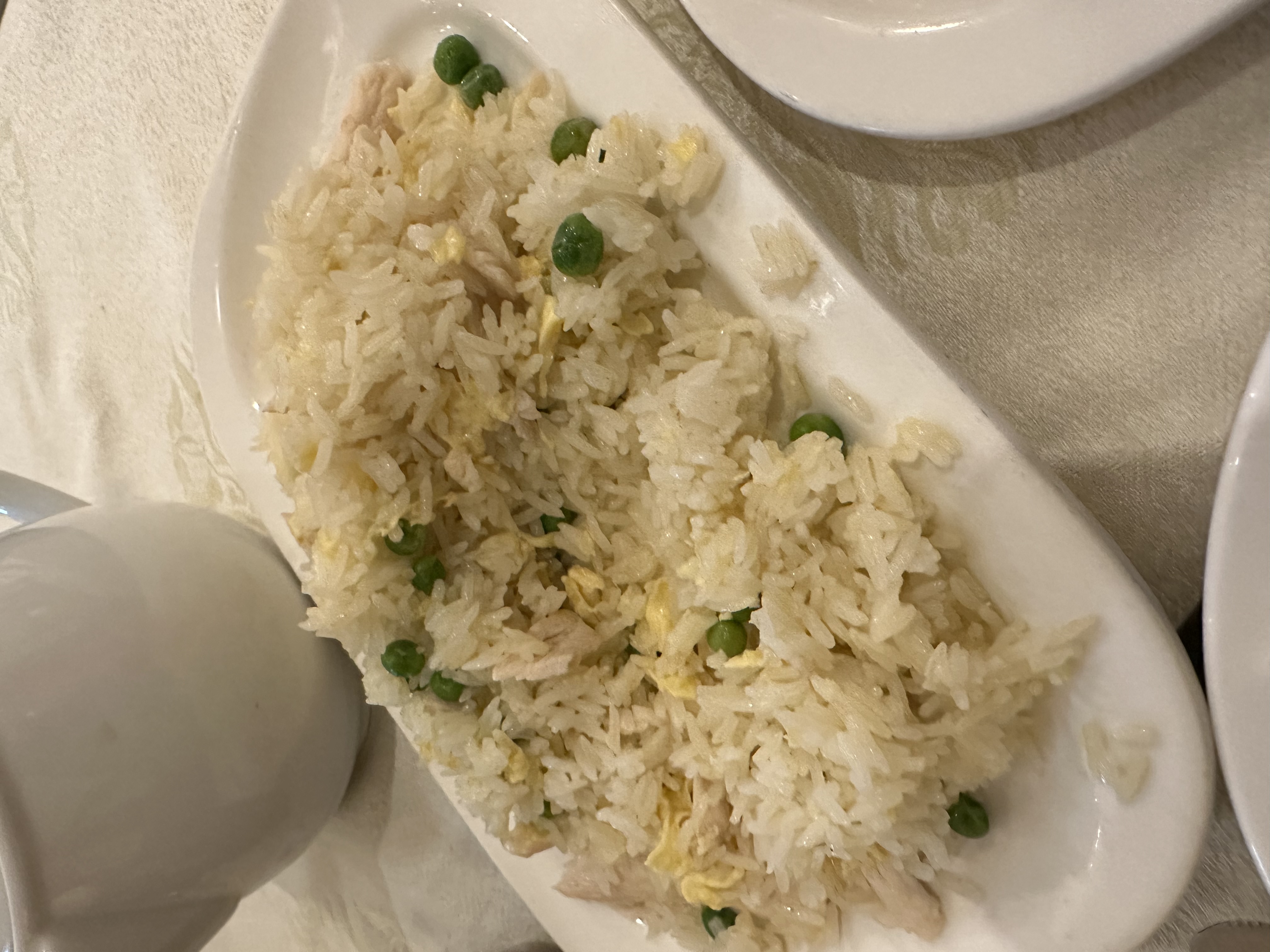 The Thai fried rice alongside is its equal. Wok-fired with the kind of heat that only confidence and a seasoned pan can produce, each grain separate, each herb fresh, each vegetable retaining its color and bite. The rice does not merely accompany the chicken. It engages it in dialogue: two dishes sharing a plate without competing, each elevating the other.